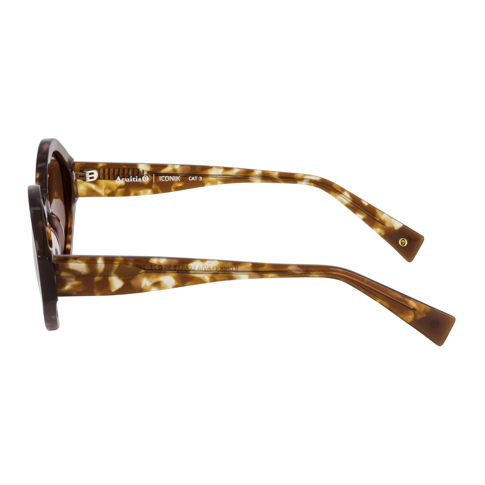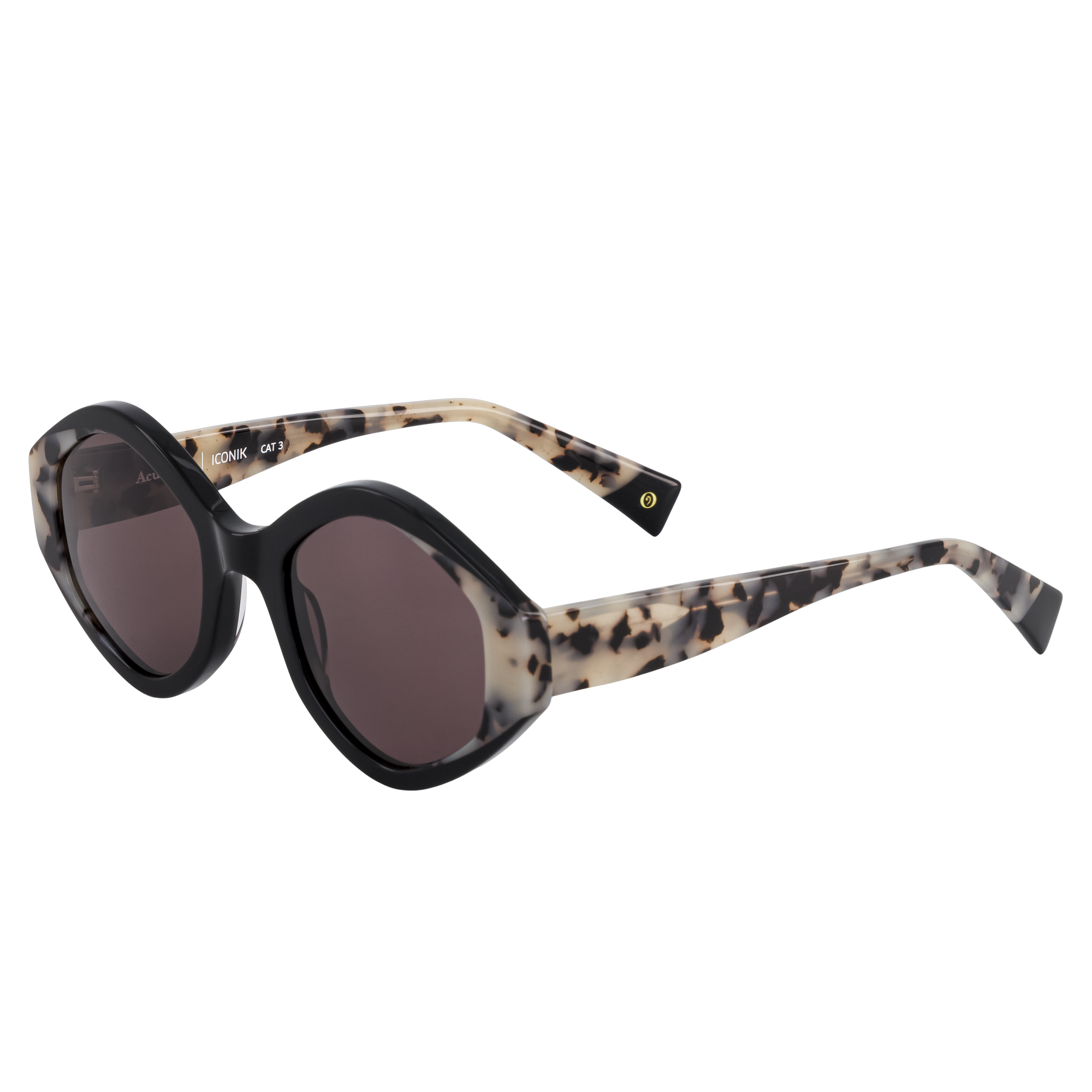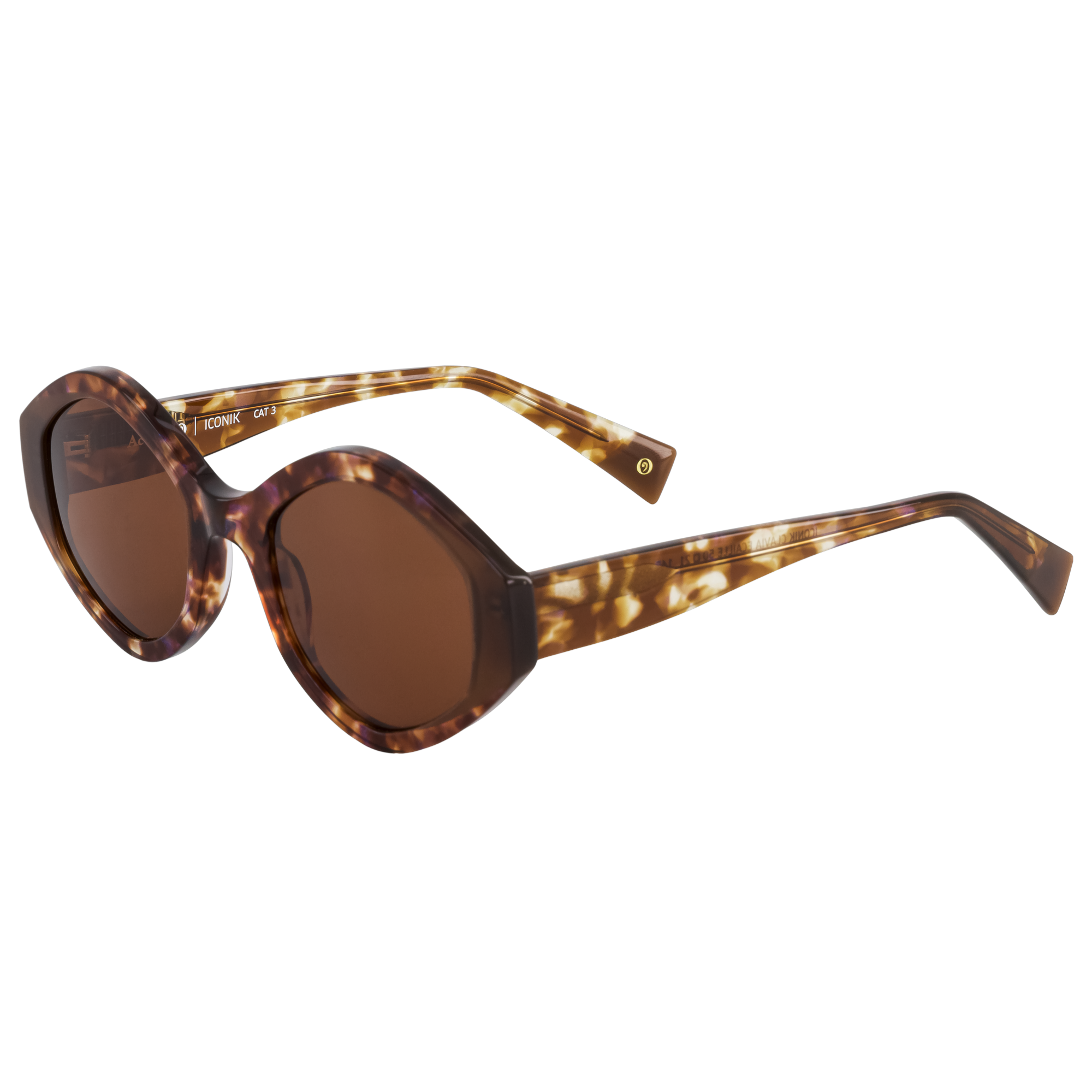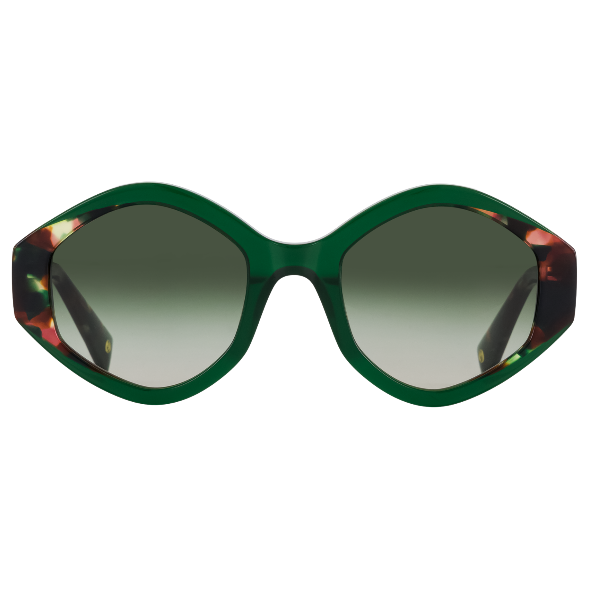 Monture solaire oversize à la géométrie affirmée. Le jeu de laminations colorées entre plaques translucides et écailles teintées crée un effet matière raffiné. Une esthétique audacieuse, enrichie de teintes organiques comme le vert sauge et la terracotta.