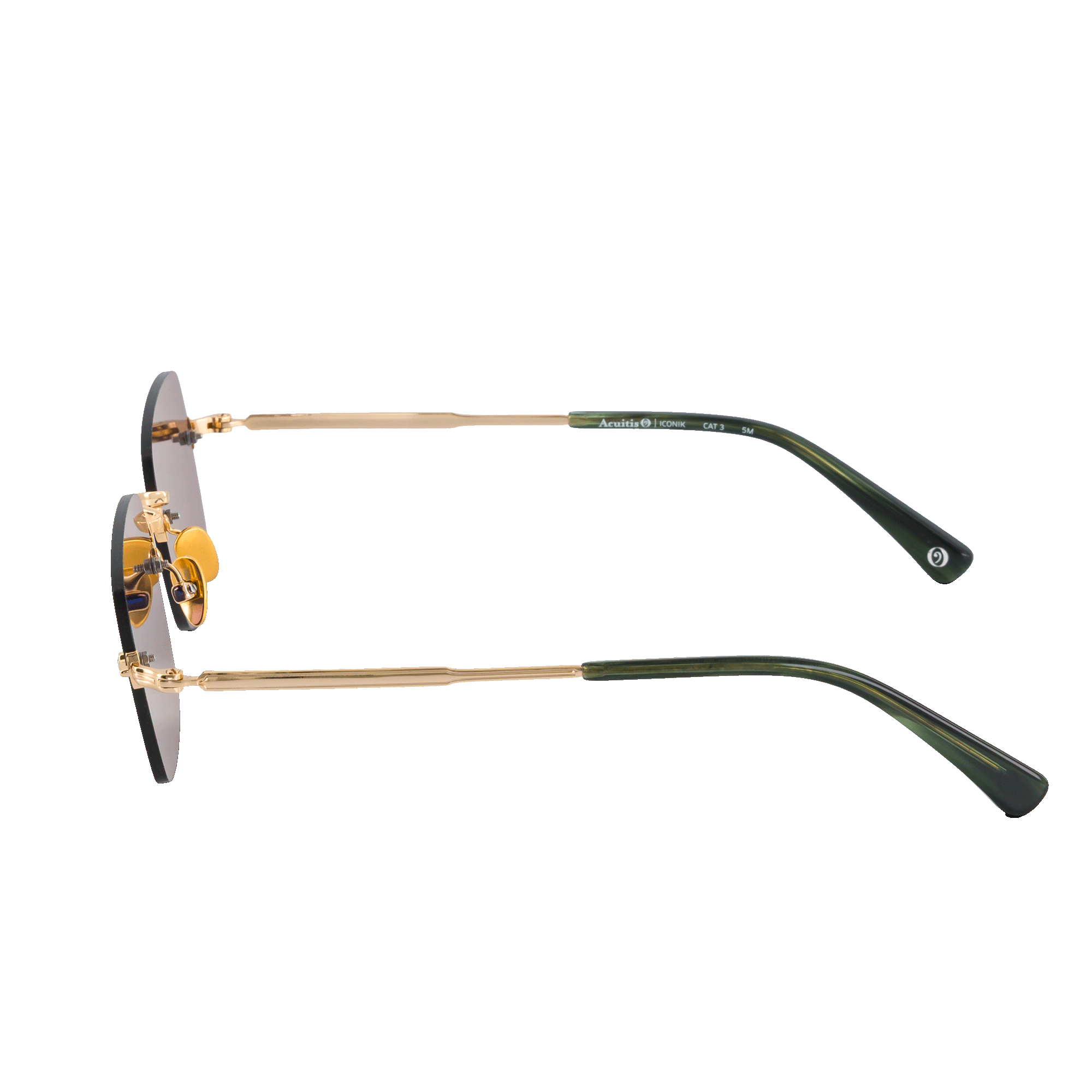 Monture perçée en titane, légère et précise, proposée en deux formes de verres : ovale et rectangulaire. L’architecture commune permet l’interchangeabilité des verres et des finitions métalliques. Déclinée en or, noir, or antique et gun antique, ICONIK TITANIUM offre un style personnalisé et élégant, adapté aux grands comme aux petits visages..
