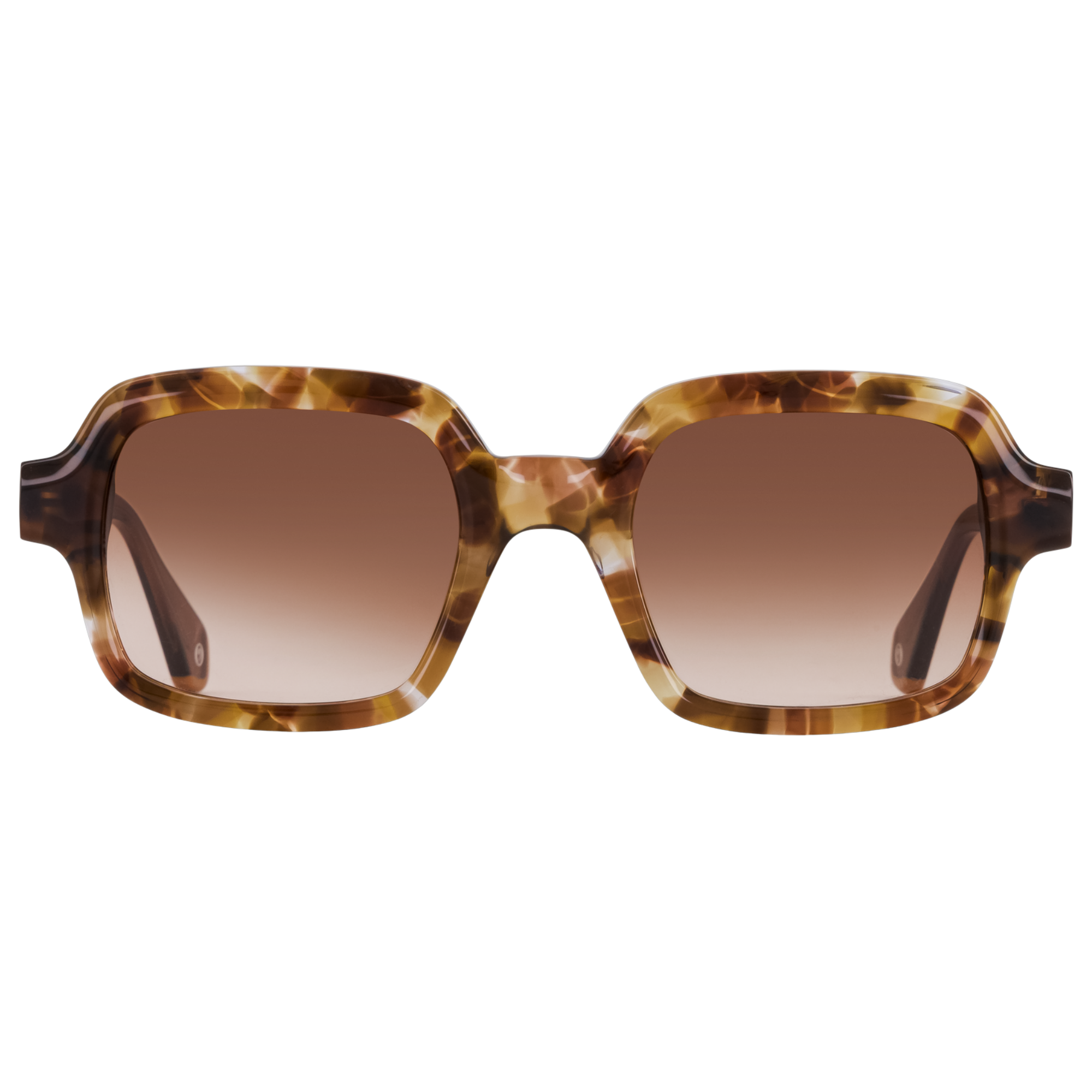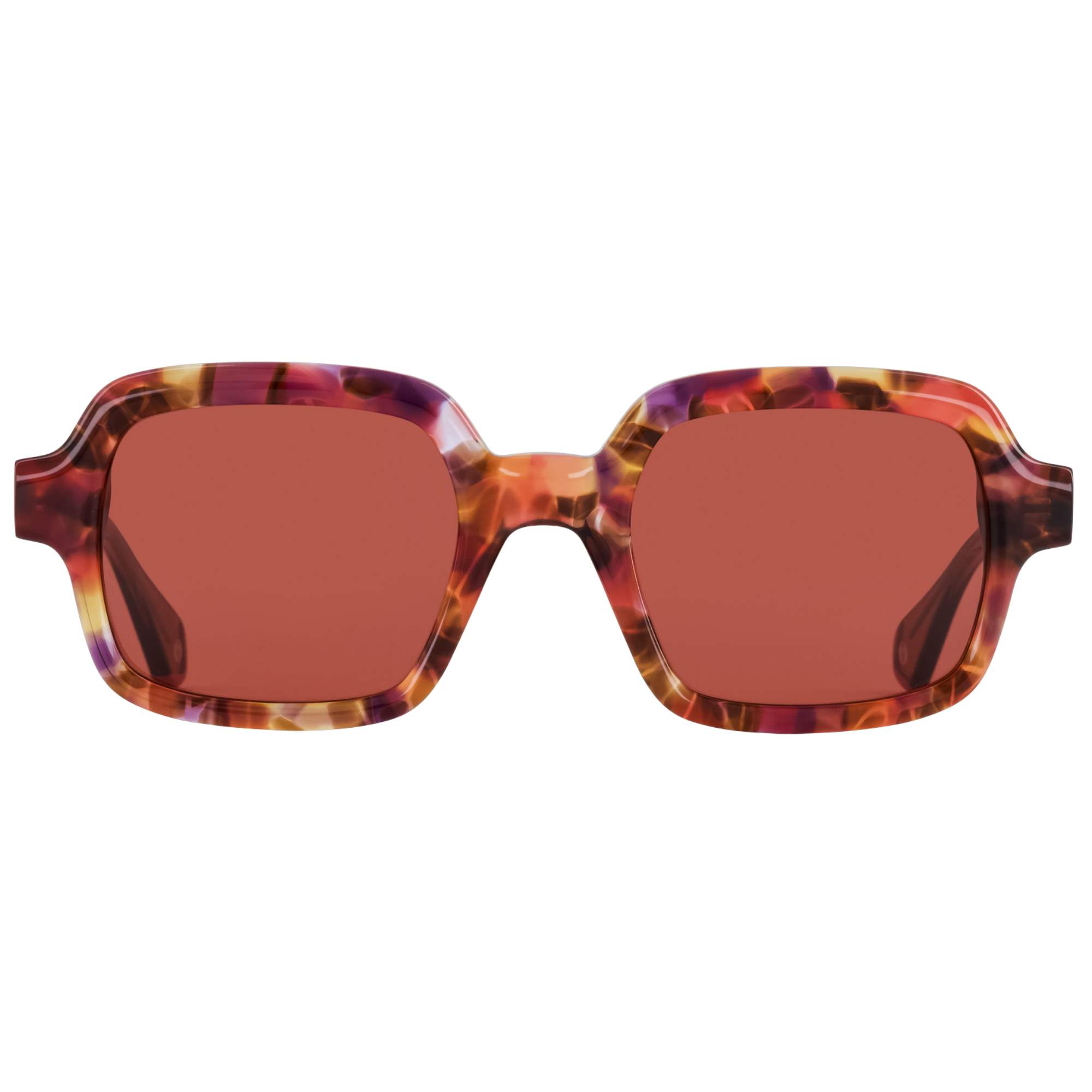 Monture rectangulaire oversize en acétate au design graphique et sculptural. Les branches, à l’allure bijou, s’harmonisent avec les faces en écailles ornées de motifs floraux dé...