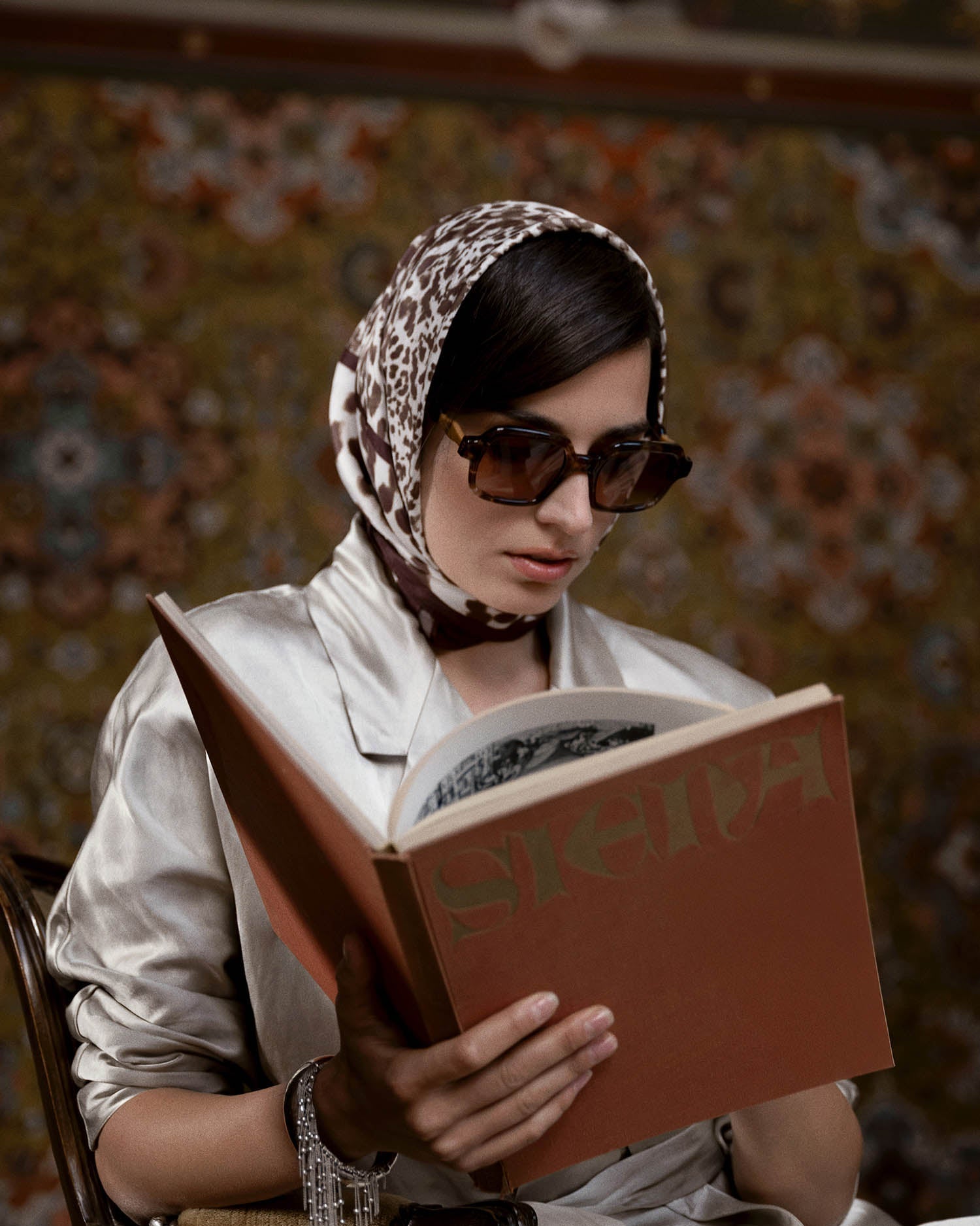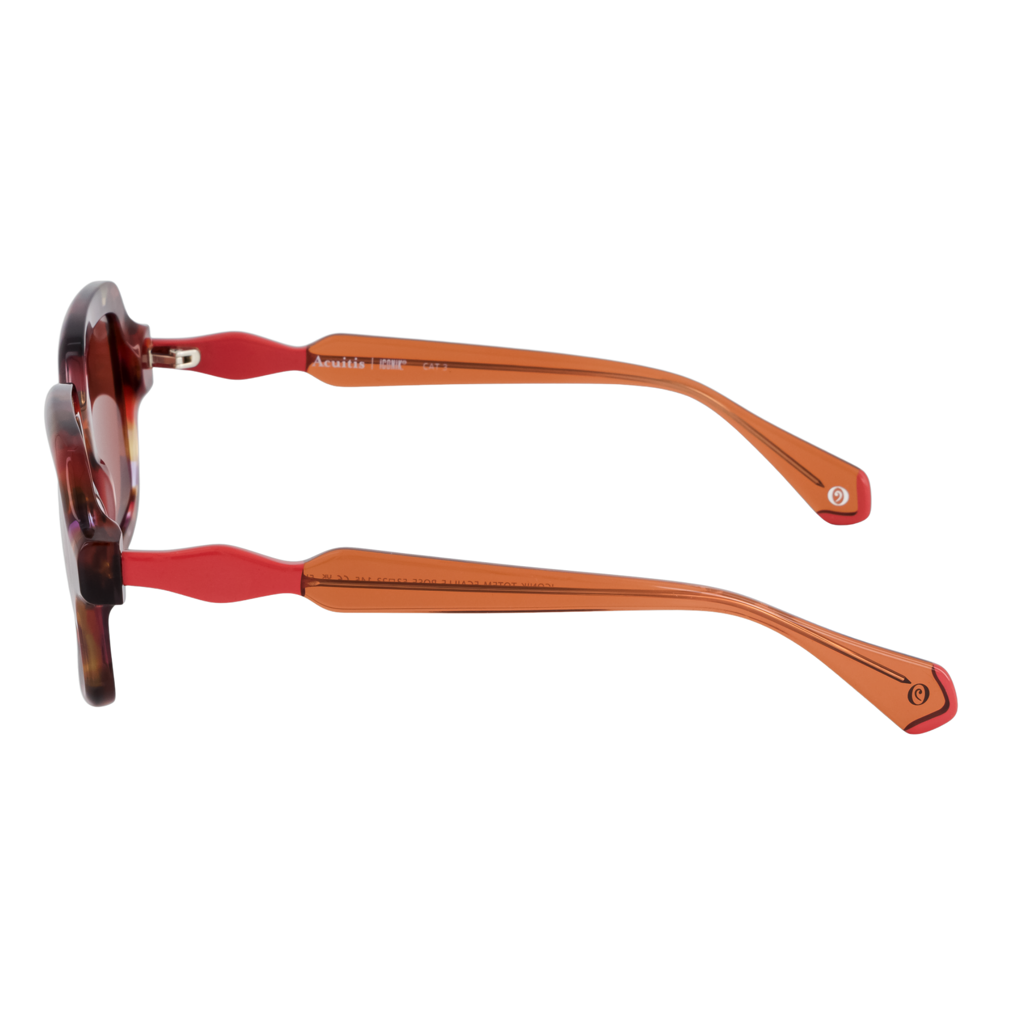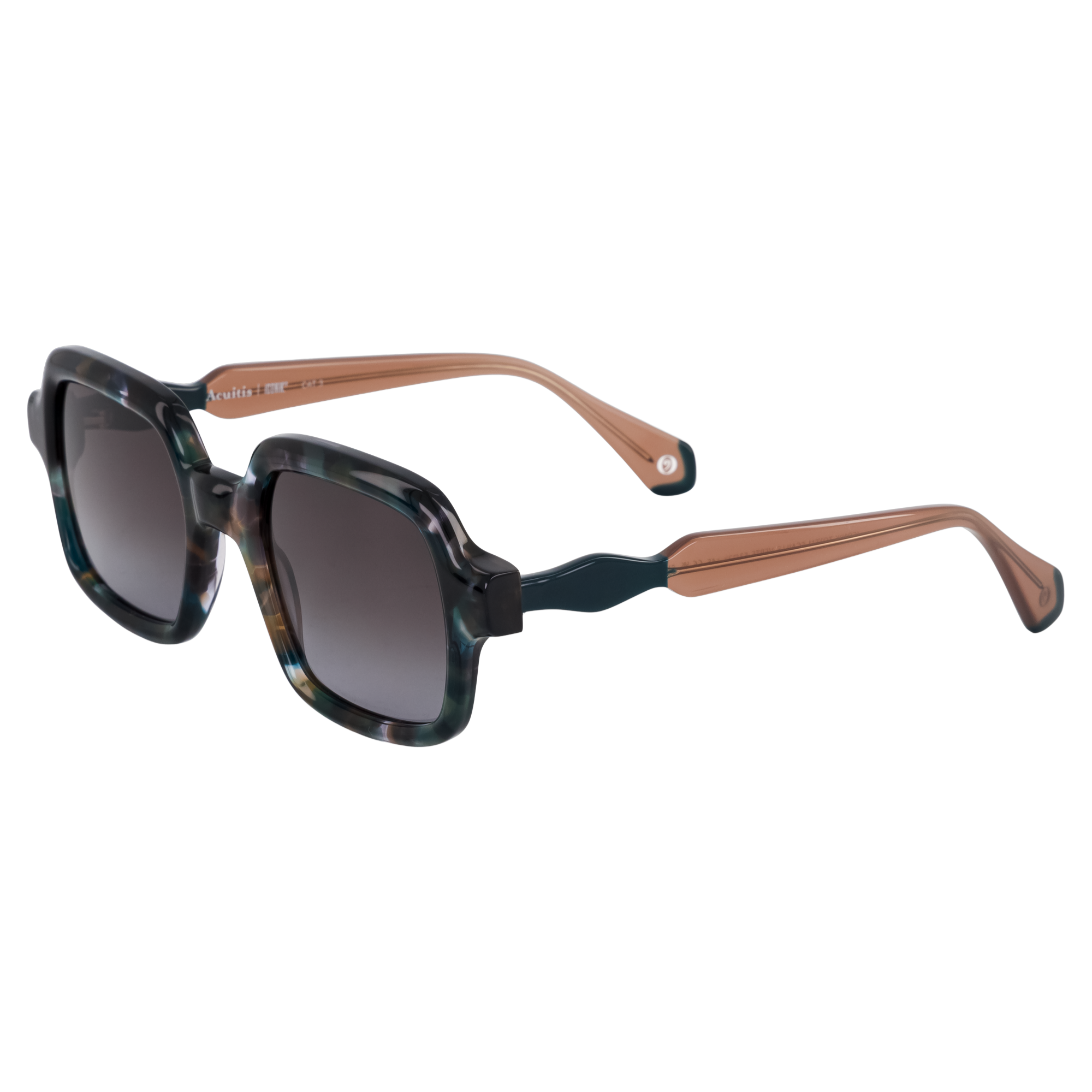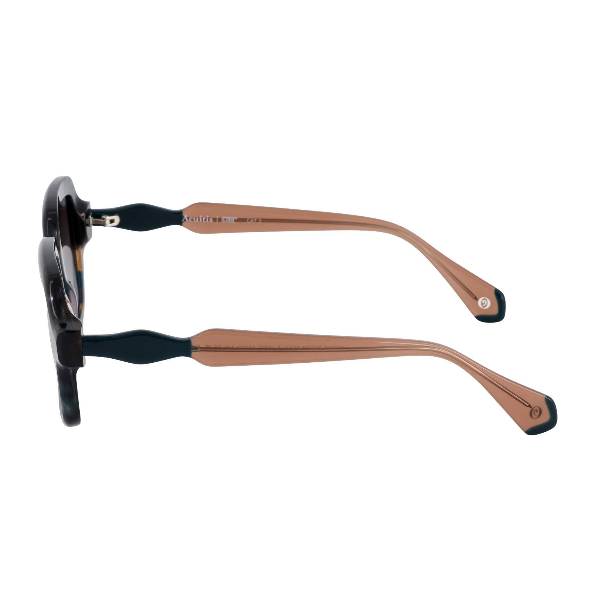 Monture rectangulaire oversize en acétate au design graphique et sculptural. Les branches, à l’allure bijou, s’harmonisent avec les faces en écailles ornées de motifs floraux délicats. Proposée en écailles transparentes Tokyo, vert, fuchsia et marron, chaque déclinaison sublime des branches aux laminations assorties pour un jeu d’harmonies colorées.