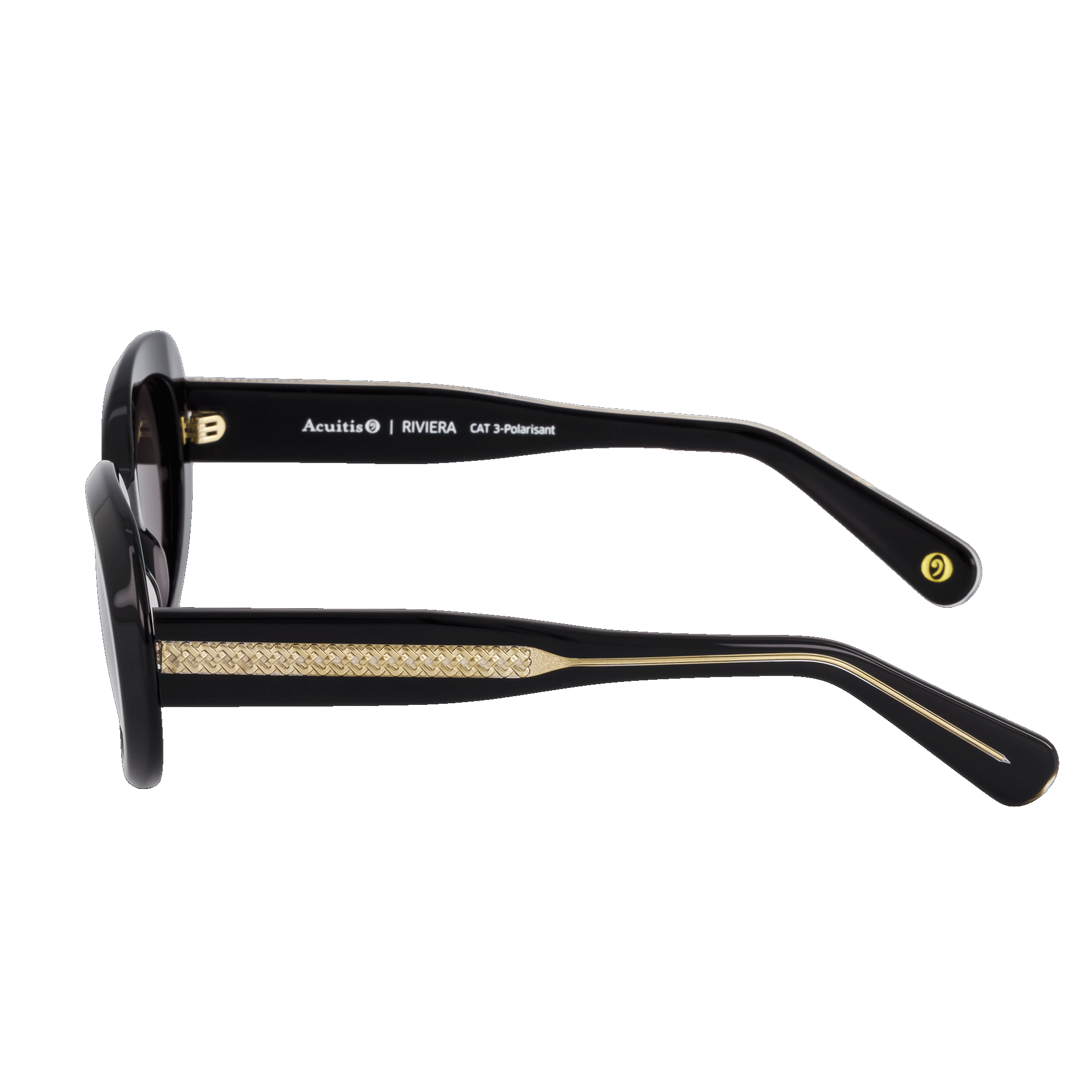 Monture féminine à l’esprit Riviera, reconnaissable par sa soie insérée. Forme oversize ovale, proposée en noir profond, écailles brunes/rosées et teintes nude.
