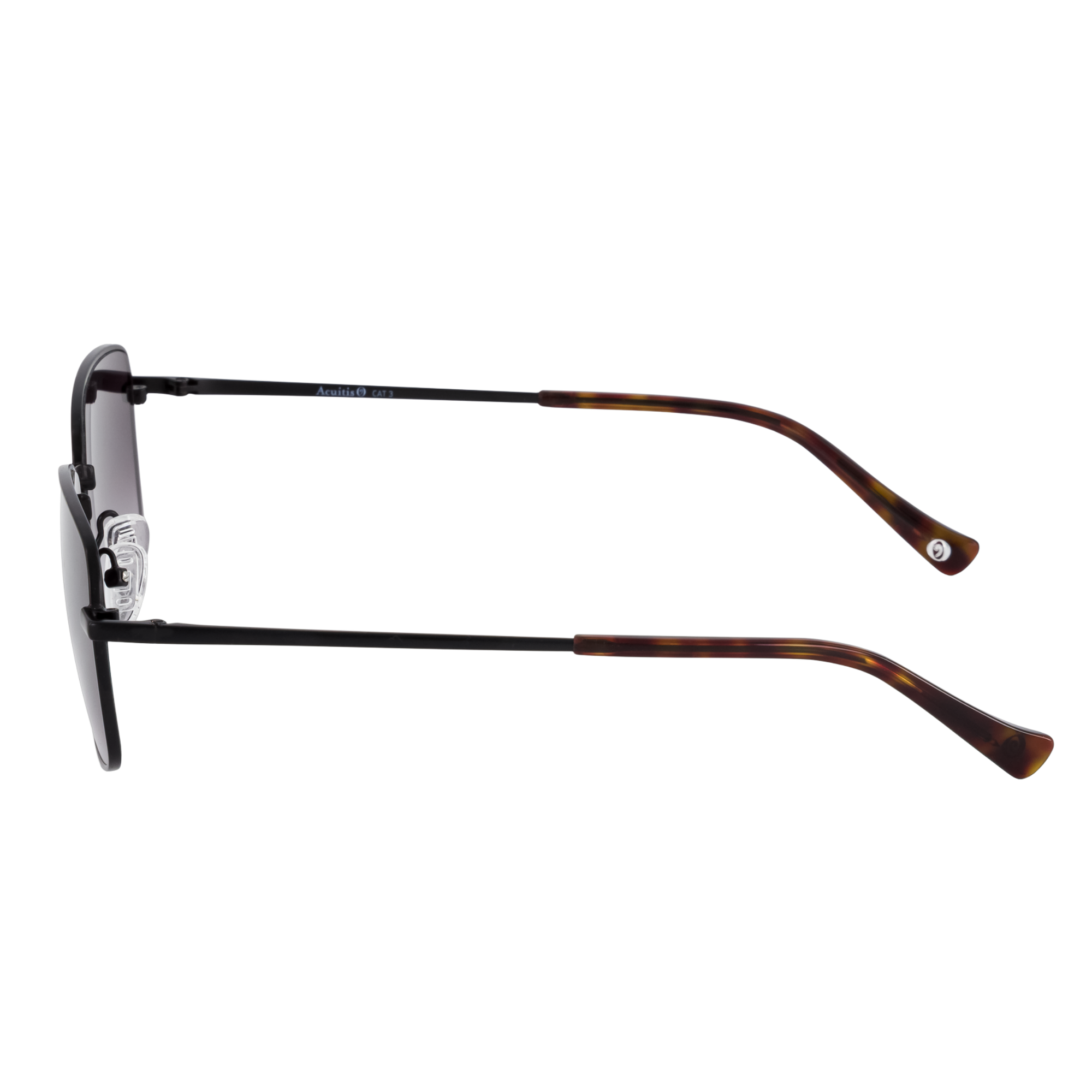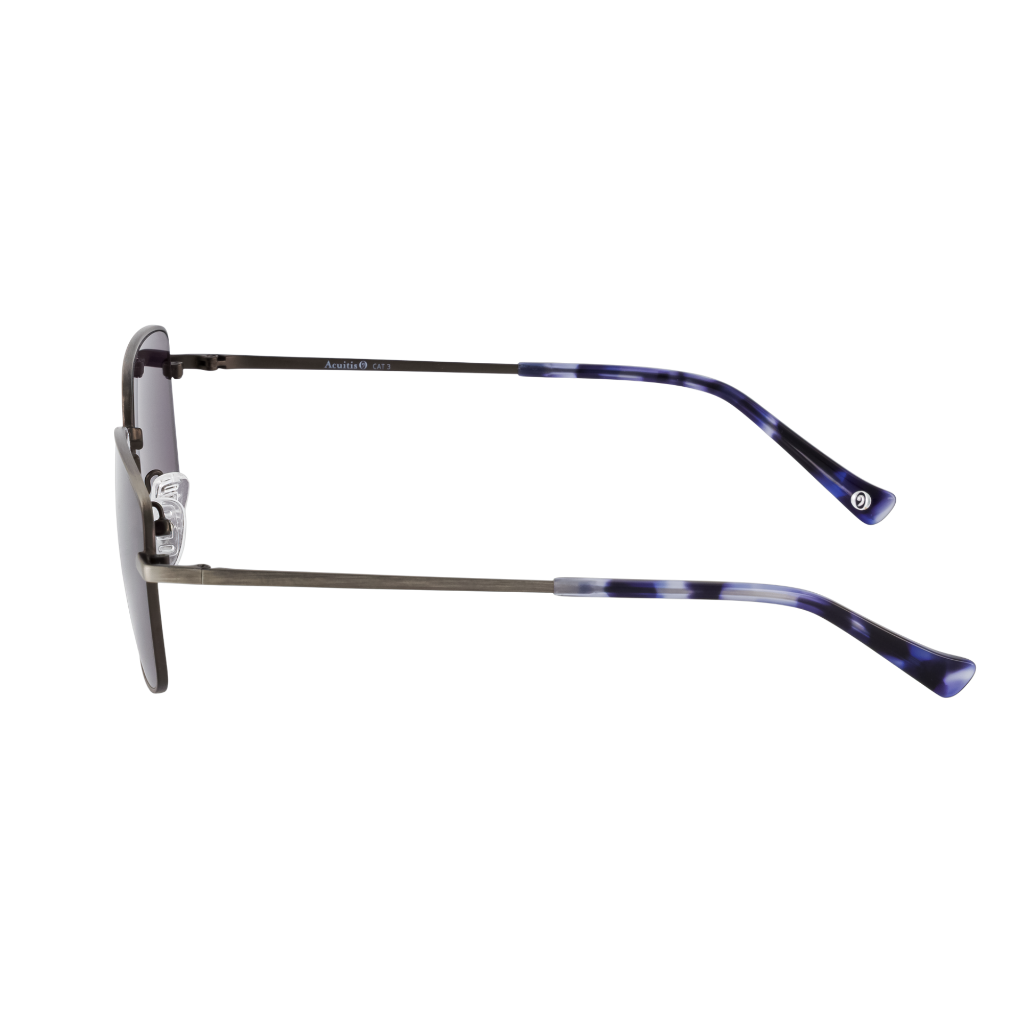 Une solaire rectangulaire en métal au design épuré et moderne. Disponible en antique gold/verres verts, argenté/verres bleus, antique silver/verres verts, ou gun/verres orange. Les branches sont habillées de manchons acétate assortis pour plus de confort et d’élégance. Un équilibre parfait entre légèreté, minimalisme et assurance contemporaine.