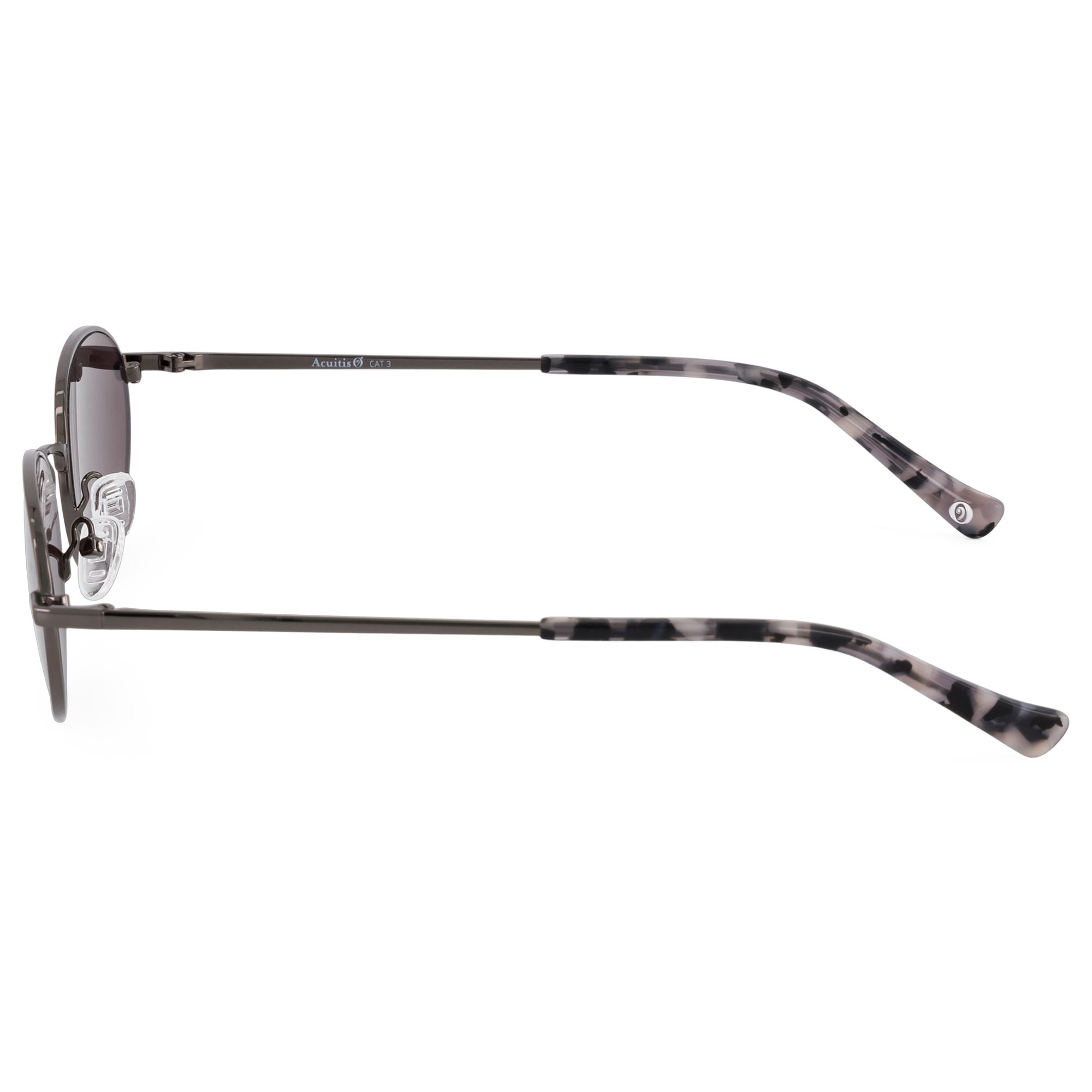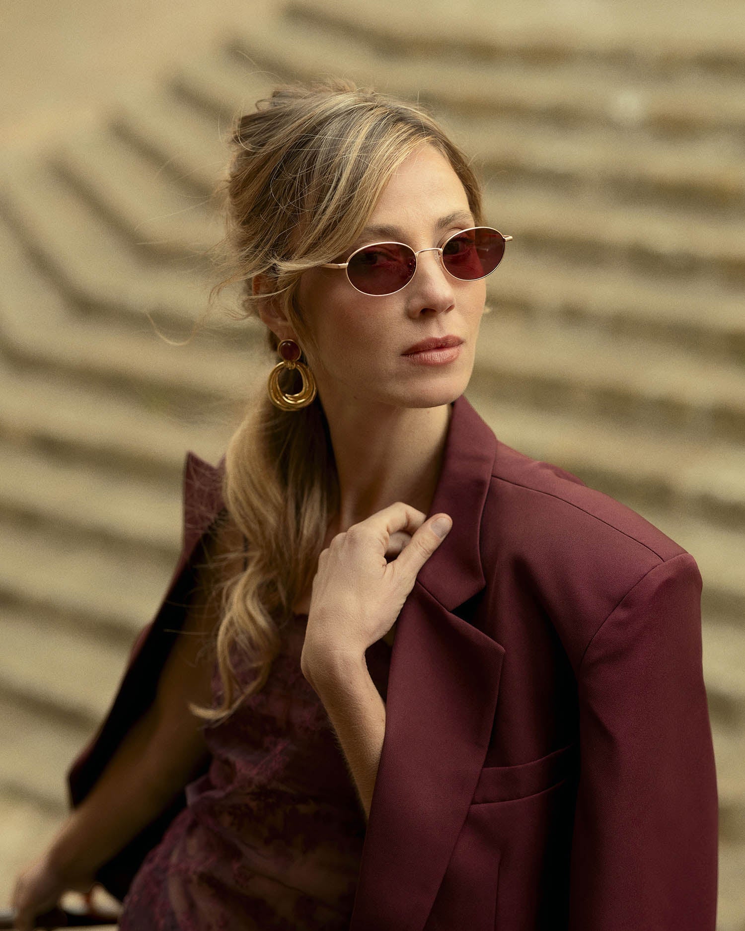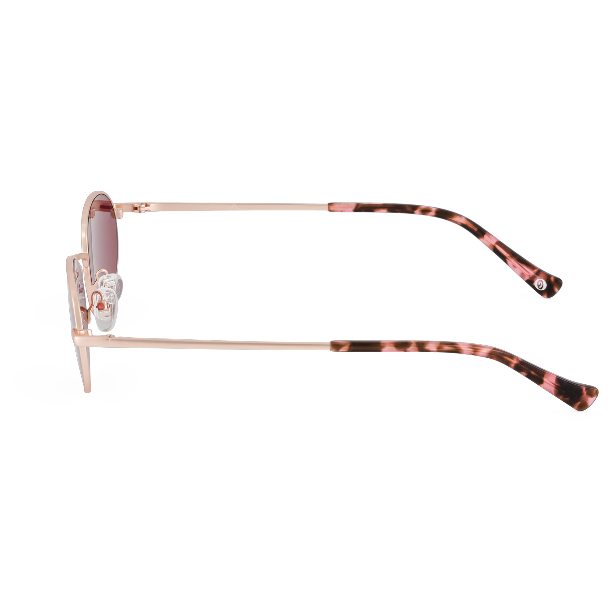 Une monture ovale de taille moyenne au design épuré et féminin. Déclinée dans une palette de teintes métalliques comme le doré, l’argenté, le noir et d’autres nuances subtiles. Les branches sont habillées de manchons en écailles, assortis aux faces, et les verres colorés apportent une touche de caractère. Un modèle raffiné et fluide, à la fois moderne et intemporel.